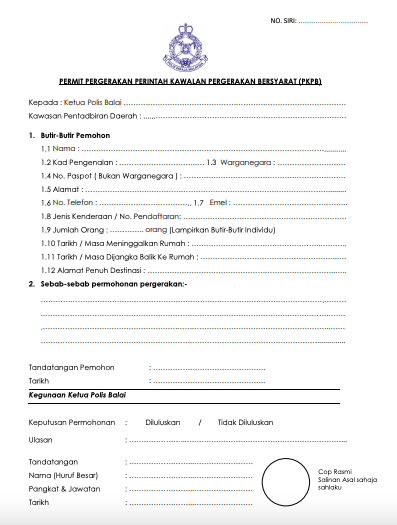 Bagi yang memerlukan surat kebenaran dari PDRM untuk merentasi kawasan kuning, jingga dan merah boleh dapatkan borang di bawah: