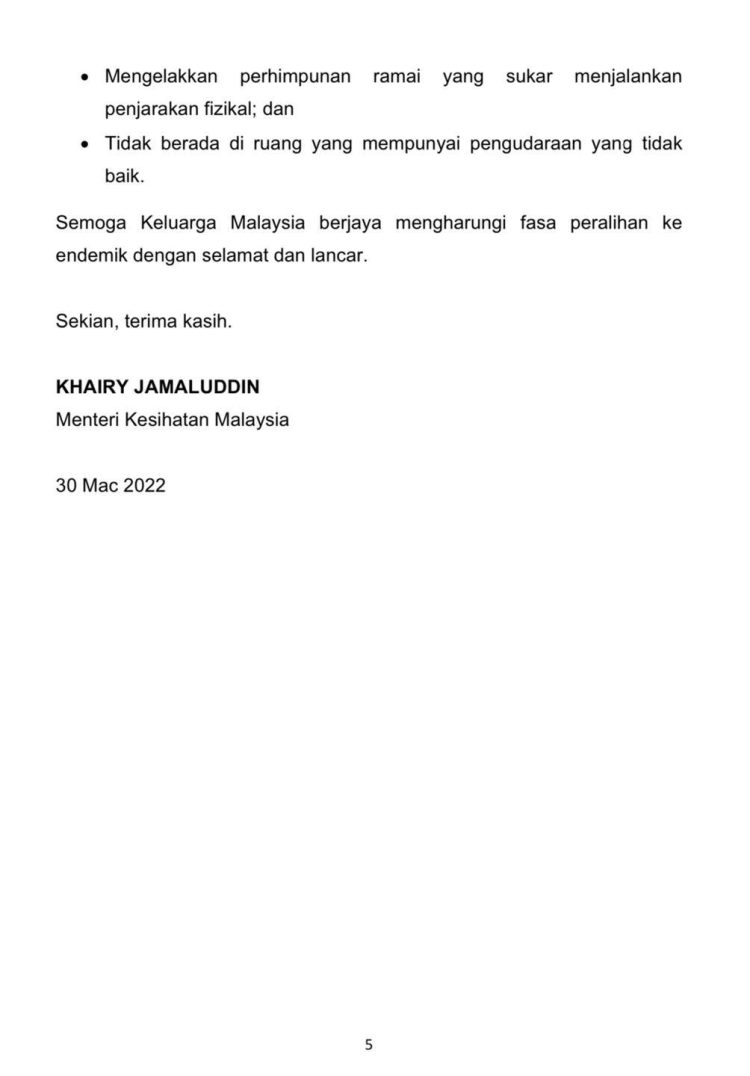 Semoga Keluarga Malaysia berjaya mengharungi fasa peralihan ke endemik dengan selamat dan lancar.