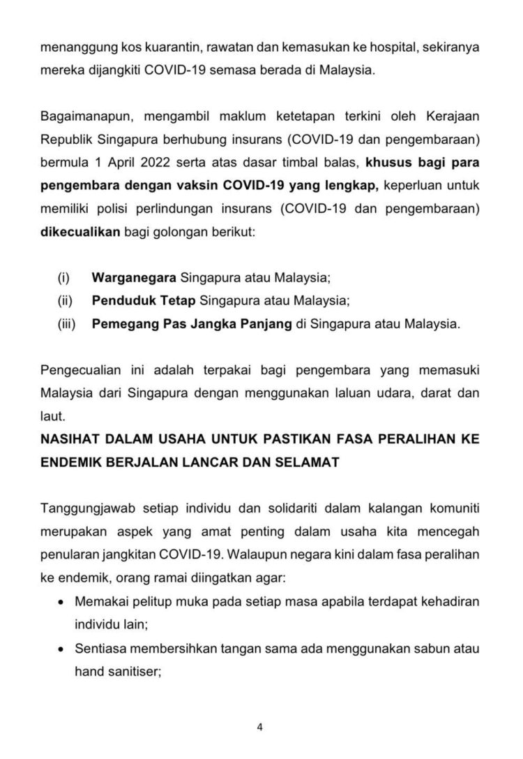 Kementerian Kesihatan Malaysia (KKM) telah membuat pemakluman berhubung prosedur operasi standard (SOP) bagi individu yang kehilangan status vaksinasi lengkap. Seperti yang telah diumumkan sebelum ini, beberapa kategori individu yang tidak ambil dos penggalak akan kehilangan status vaksinasi lengkap bermula 1 April 2022.