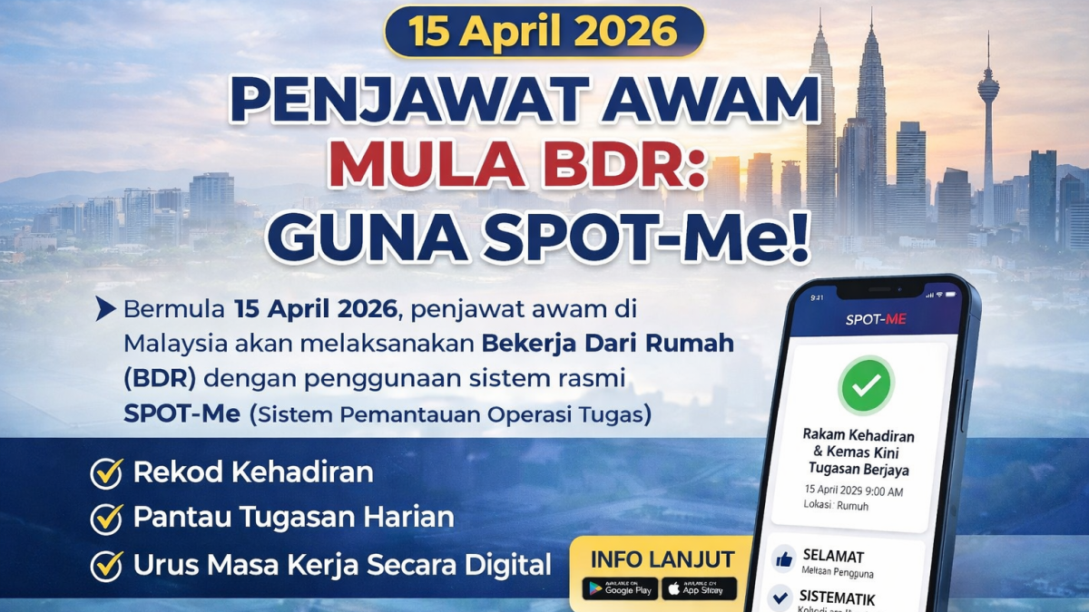 Bermula 15 April 2026, penjawat awam di Malaysia akan melaksanakan Bekerja Dari Rumah (BDR) dengan penggunaan sistem rasmi SPOT-Me (Sistem Pemantauan Operasi Tugas).