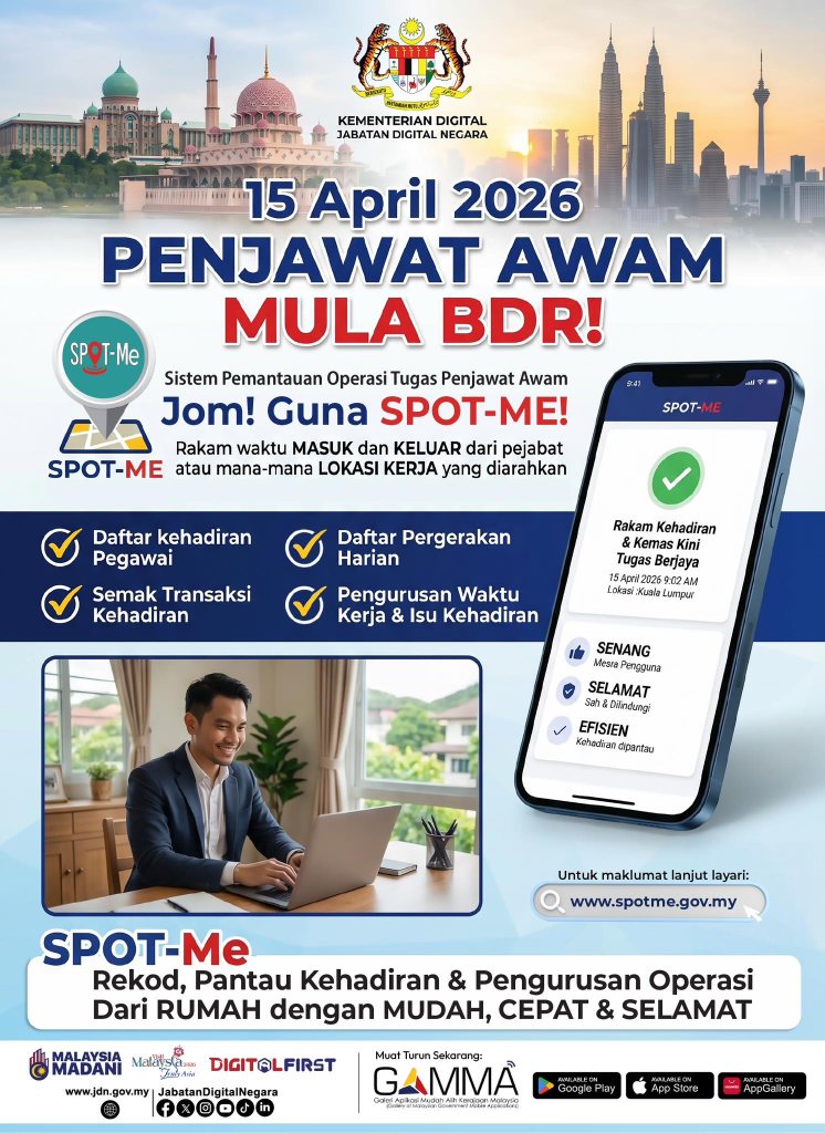 Pelaksanaan BDR bersama SPOT-Me bermula 15 April 2026 merupakan langkah besar ke arah sistem kerja penjawat awam yang lebih moden, fleksibel dan berasaskan teknologi.