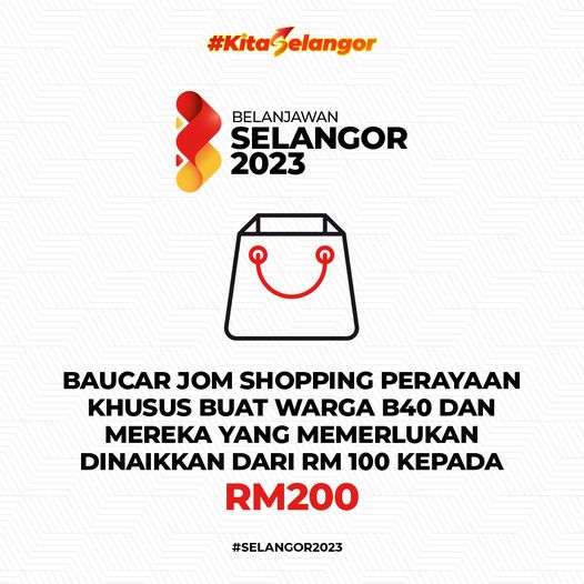 Setiap kali perayaan, warga Selangor yang kurang berkemampuan sentiasa diberi Baucar Jom Shopping oleh Kerajaan Negeri untuk dibelanjakan agar kegembiraan dikongsi bersama. Mulai tahun 2023, Kerajaan Negeri Selangor telah memaklumkan bahawa baucar Jom Shopping Perayaan dinaikkan lagi dari RM100 kepada RM200.