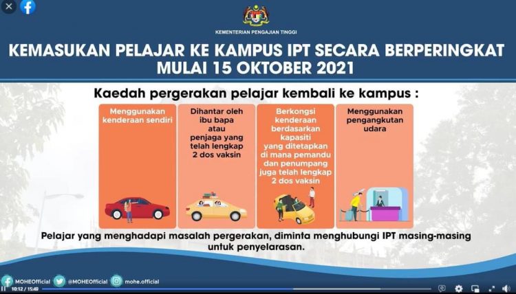 Kemasukan Pelajar Ke IPT Berperingkat Mulai 15 Oktober. Ini Syarat Kemasukan & Pergerakan Pelajar
