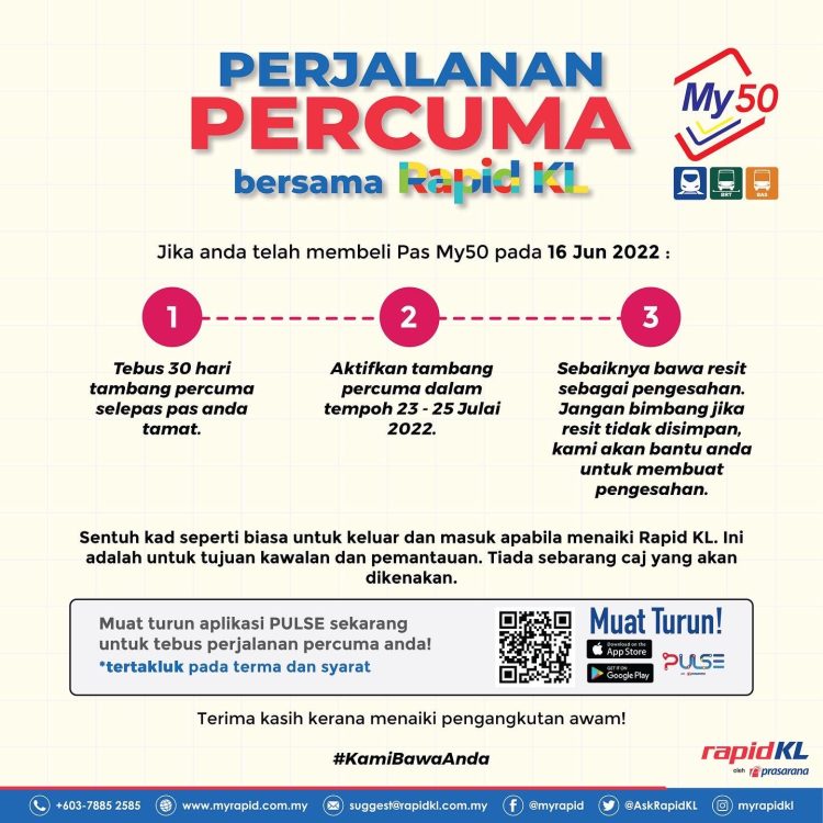 Bagaimana pula dengan pelanggan yang dah beli Pas My50 tu? Jangan risau, anda boleh tebus tambang percuma dengan ikut panduan dikongsikan!