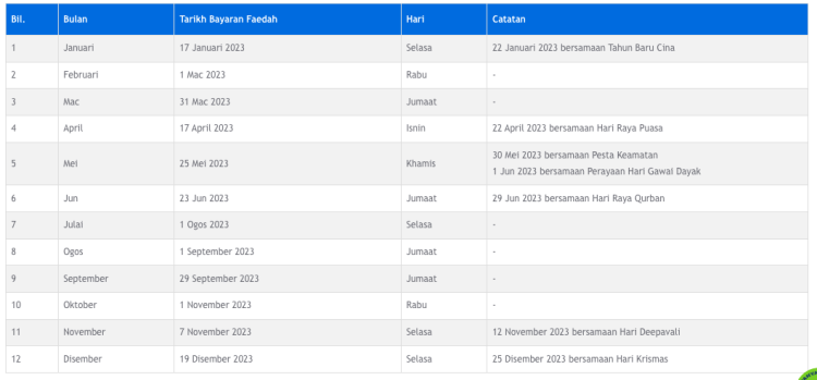 Jadual Bulanan Tarikh Bayaran Faedah PERKESO Tahun 2023