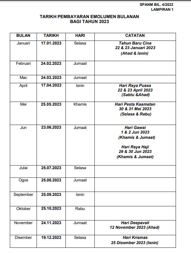 - Tarikh pembayaran gaji penjawat awam tahun 2023