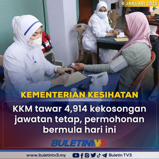 Seperti dimaklumkan, kekosongan jawatan ini dibuka mulai 6 Januari hingga 21 Januari 2023. KKM berharap calon yang layak dapat mengisi permohonan secara atas talian dan mengemukakan segera maklumat yang lengkap.