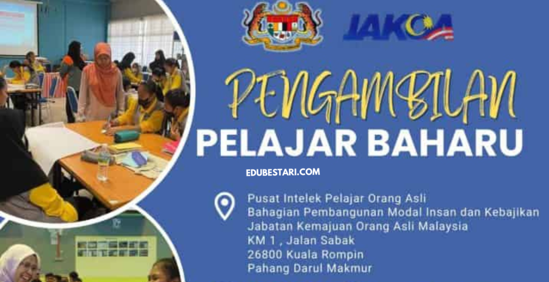 Tawaran permohonan kemasukan ke Pusat Intelek Pelajar Orang Asli (PIPOA) telah dibuka. Sila lengkapkan Borang Permohonan Kemasukan ke Pusat Intelek Pelajar Orang Asli (PIPOA) Tingkatan Satu Tahun 2023 Secara Atas Talian. Tarikh tutup permohonan iaitu pada 16 Februari 2023.