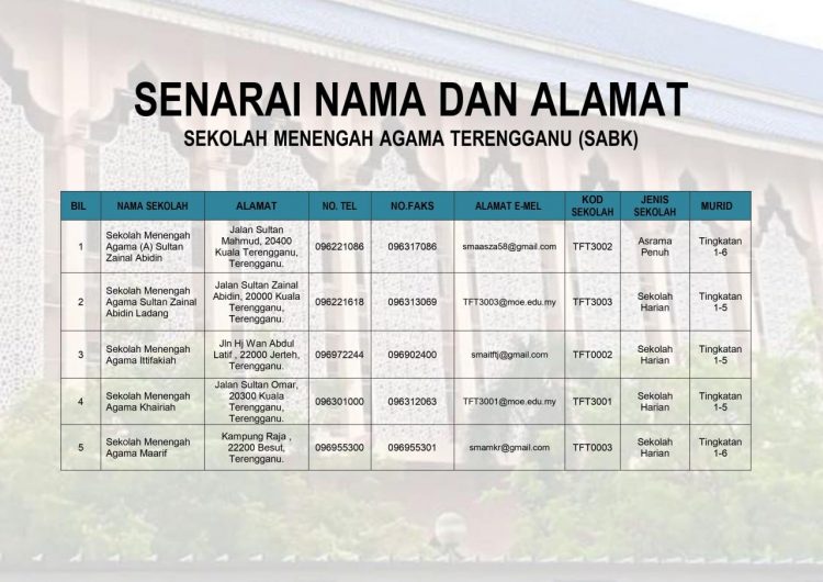 Ikuti perkongsian di bawah untuk maklumat lanjut permohonan kemasukan ke Sekolah Menengah Agama Negeri Terengganu.
