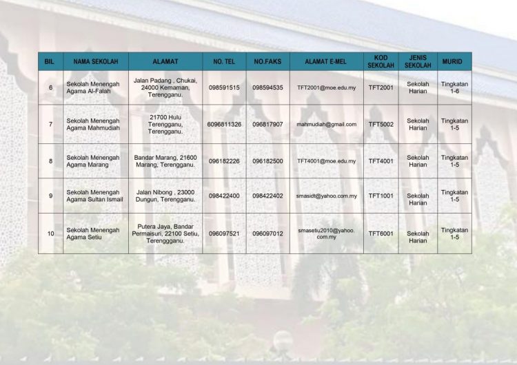 SENARAI SEKOLAH MENENGAH AGAMA TERENGGANU
