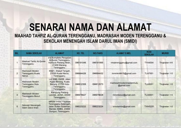 Tawaran Kemasukan Pelajar Tingkatan 1 Ke Sekolah Menengah Agama Terengganu Tahun 2022