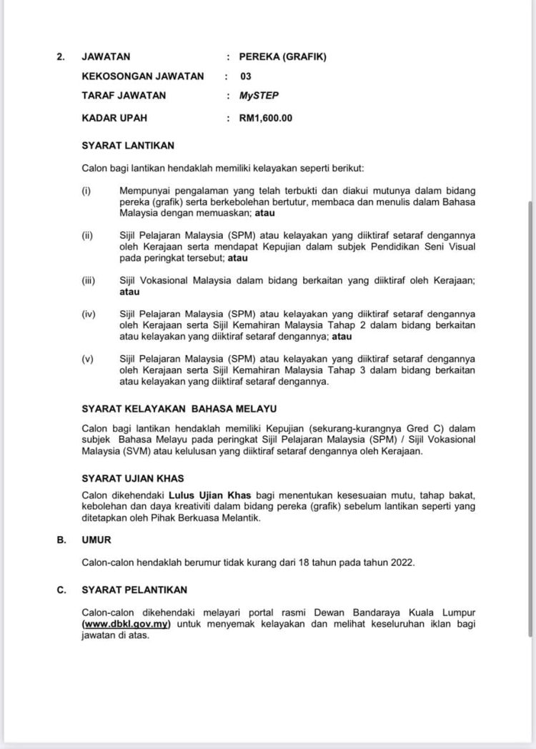 - Nama majikan: Dewan Bandaraya Kuala Lumpur (DBKL)