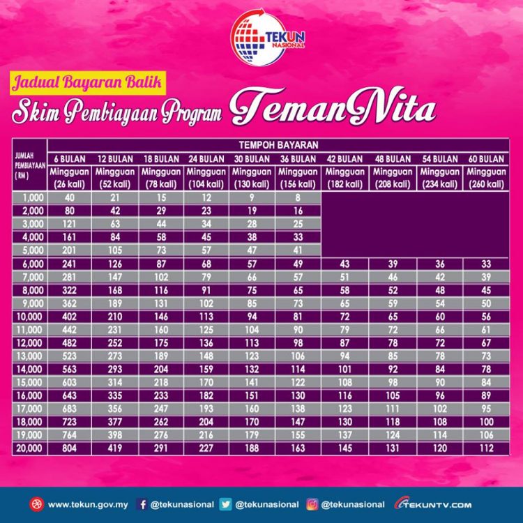 Kaedah bayaran balik Skim Pembiayaan TemanNita adalah seperti berikut:
