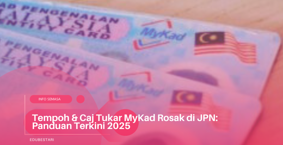 Artikel ini akan menerangkan cara menukar MyKad rosak, lokasi perkhidmatan yang tersedia, tempoh siap MyKad baharu, serta kadar bayaran yang dikenakan. Dengan maklumat ini, anda tidak lagi perlu risau atau bertangguh untuk menukar MyKad rosak.