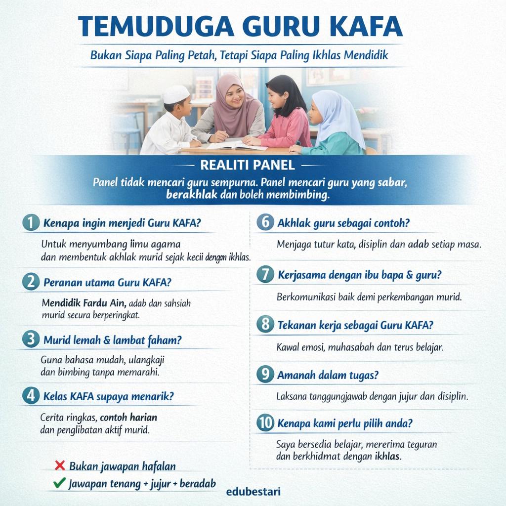 Ingat: Temuduga Guru KAFA banyak menilai sikap dan nilai, bukan hafalan semata-mata.