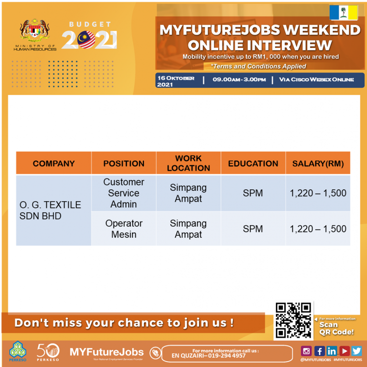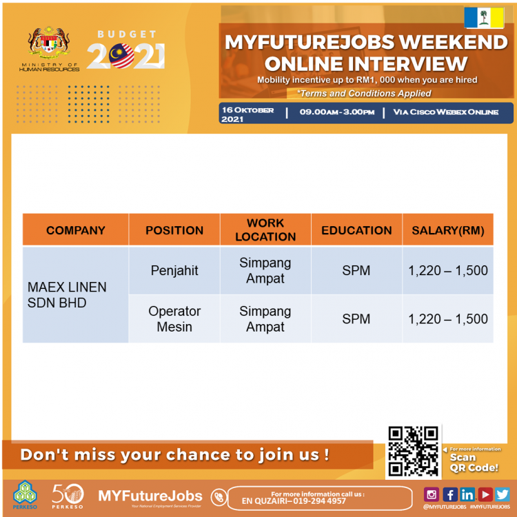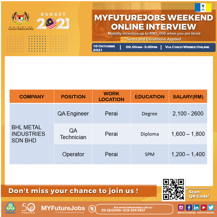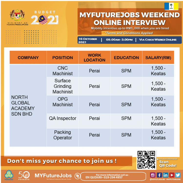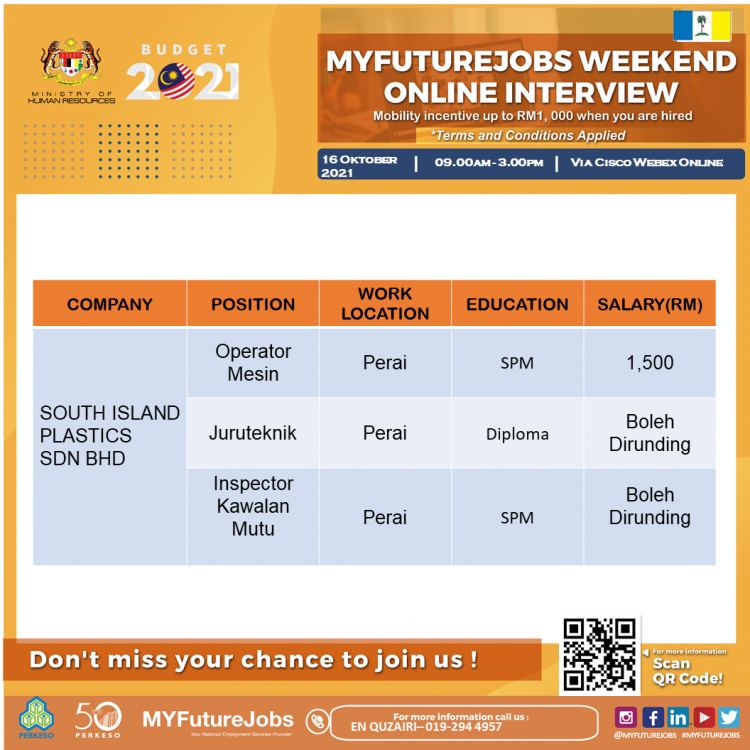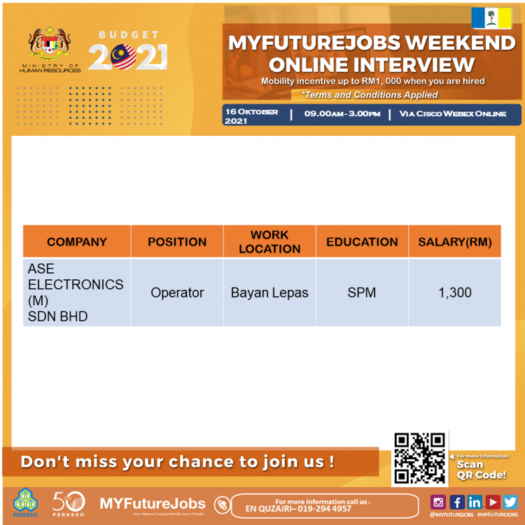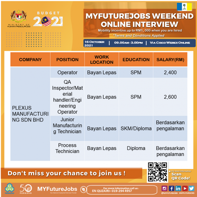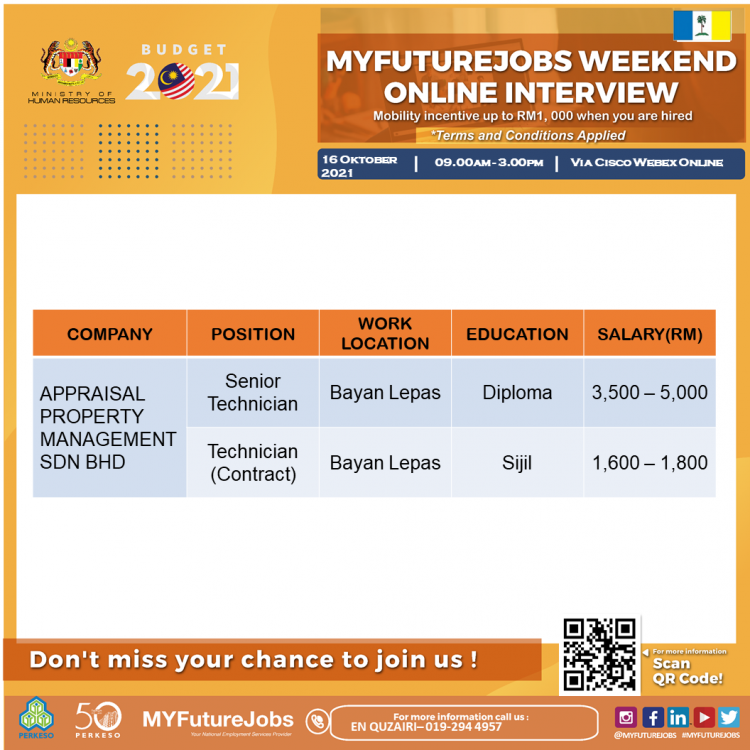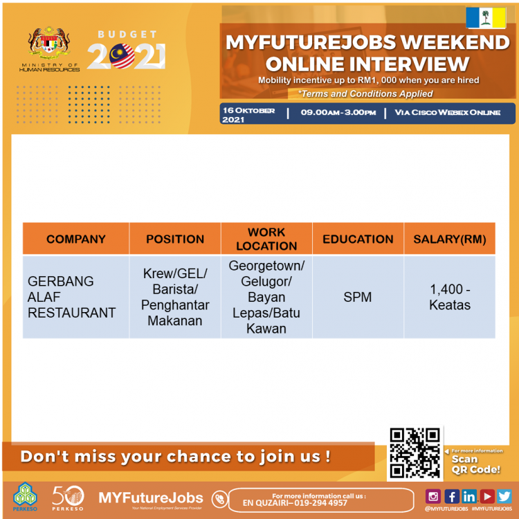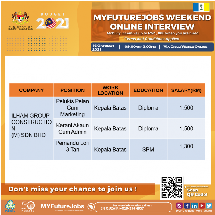 Berita baik buat pencari kerja di luar sana terutamanya graduan dan pekerja yang diberhentikan kerja! PERKESO Pulau Pinang akan mengadakan MyFutureJobs Weekend Online Interview pada 16 Oktober 2021 bermula jam 9.00 pagi hingga 3.00 petang.