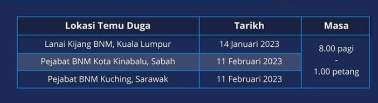 Ikuti perkongsian di bawah untuk maklumat lanjut temuduga terbuka Bank Negara Malaysia.