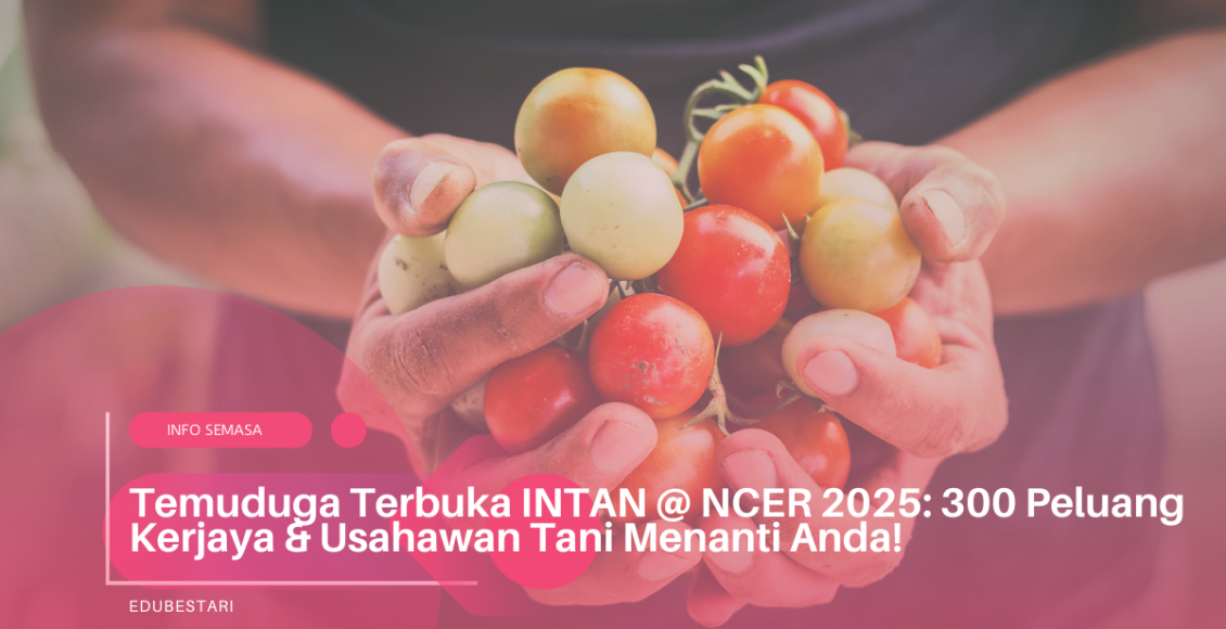 Temuduga Terbuka INTAN @ NCER 2025 merupakan peluang terbaik untuk memulakan kerjaya stabil sambil menceburi dunia pertanian moden. Dengan lebih 300 peluang pekerjaan, pendapatan tetap, dan latihan komprehensif, program ini sesuai untuk pencari kerja, belia menganggur, serta individu yang mahu memulakan perjalanan sebagai usahawan tani. Jangan lepaskan peluang ini — sertai temuduga terbuka dan bina masa depan anda dengan lebih terjamin.