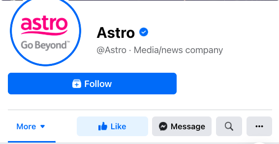 - Pergi ke laman Facebook rasmi Astro di https://www.facebook.com/Astro/