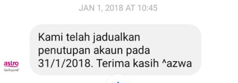 - Pihak Astro akan memberi makluman tarikh penjadualan penutupan akaun anda.