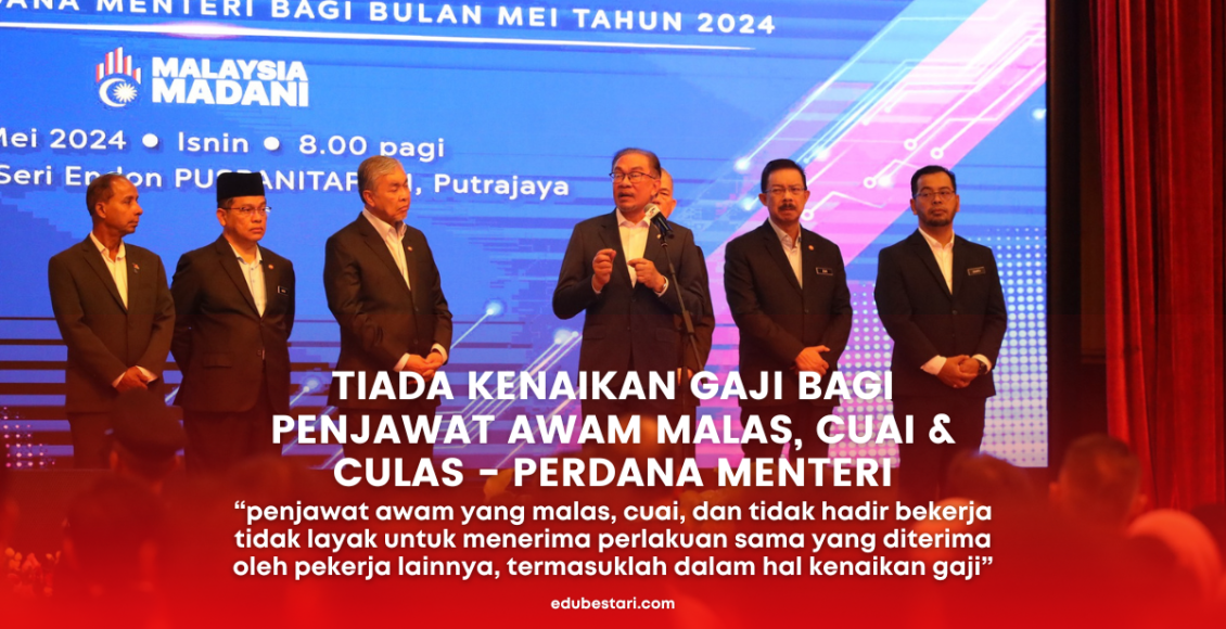Perdana Menteri, Datuk Seri Anwar Ibrahim, telah menegaskan bahawa penjawat awam yang malas, cuai, dan tidak hadir bekerja tidak layak untuk menerima perlakuan sama yang diterima oleh pekerja lainnya, termasuklah dalam hal kenaikan gaji. Beliau menyeru kepada semua penjawat awam untuk memantau dan mengenal pasti kakitangan kerajaan yang mencemarkan nama baik jabatan dan perkhidmatan awam.