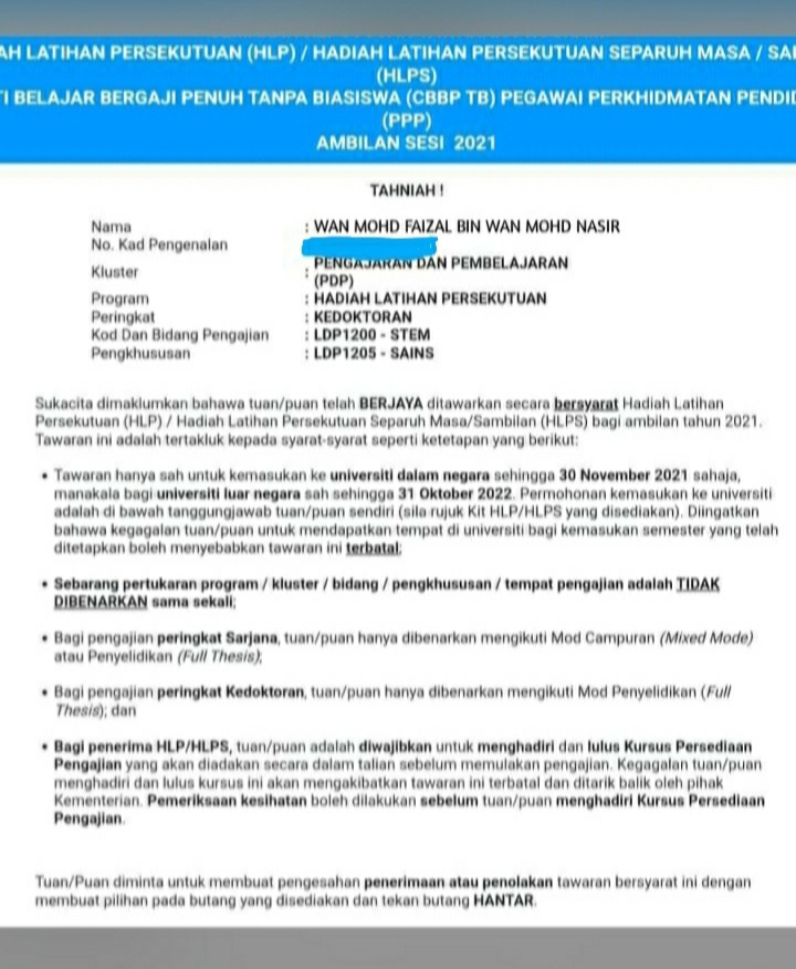 Kepada PPP yang berminat nak sambung pengajian yang lebih tinggi dengan biasiswa HLP, anda boleh dapatkan tips daripada perkongsian seorang guru yang berjaya mendapat tawaran cuti belajar bergaji penuh dengan biasiswa PhD HLP KPM Tahun 2022 melalui laman facebook.