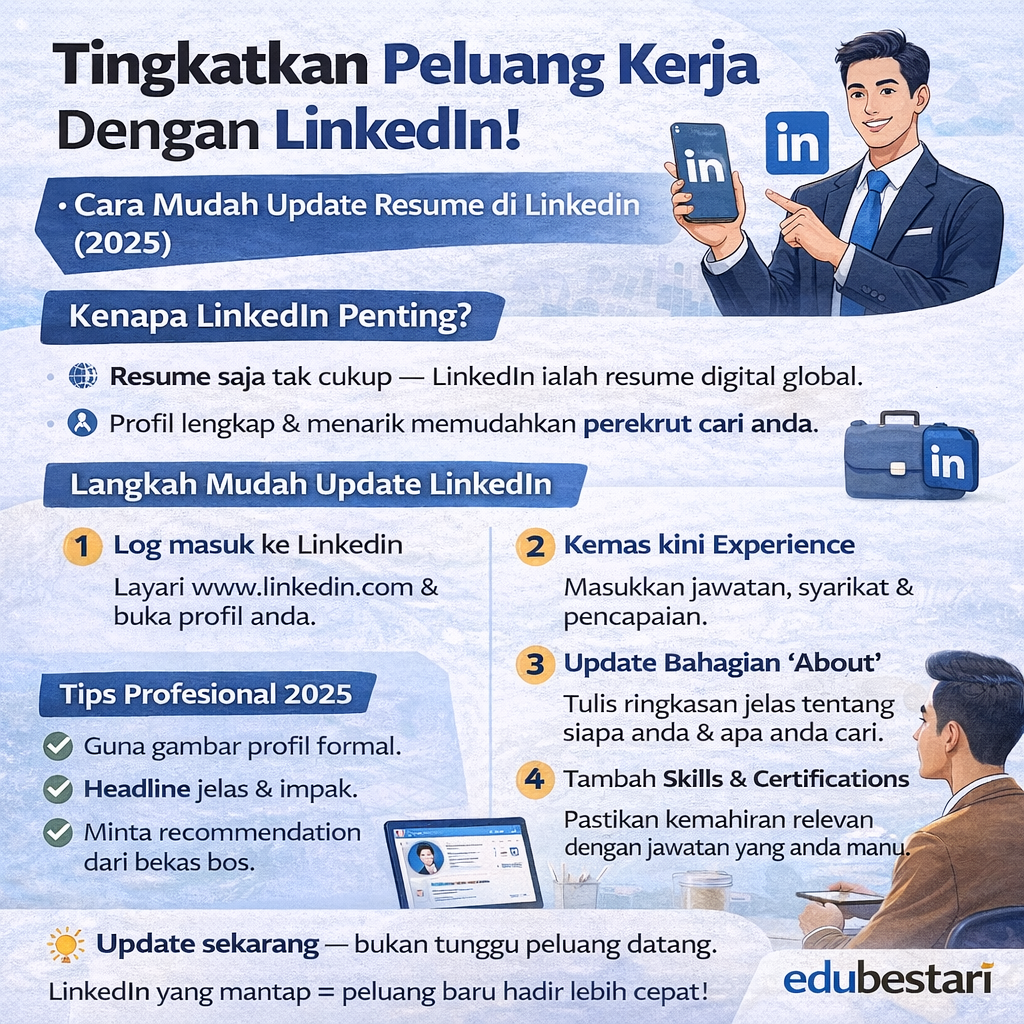 Anggap LinkedIn sebagai resume hidup yang boleh dicari perekrut 24 jam sehari. Ramai yang layak, tetapi gagal kerana profil LinkedIn kosong atau terlalu “lokal”.