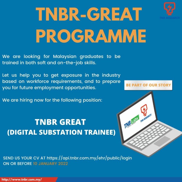Anda graduan lulus ijazah yang sedang mencari peluang bina kerja atau latihan untuk bina kerjaya? Jika anda berminat untuk bina kerjaya dengan Tenaga Nasional Berhad (TNB), anda boleh mohon untuk ikuti program ditawarkan, iaitu TNBR-GREAT.