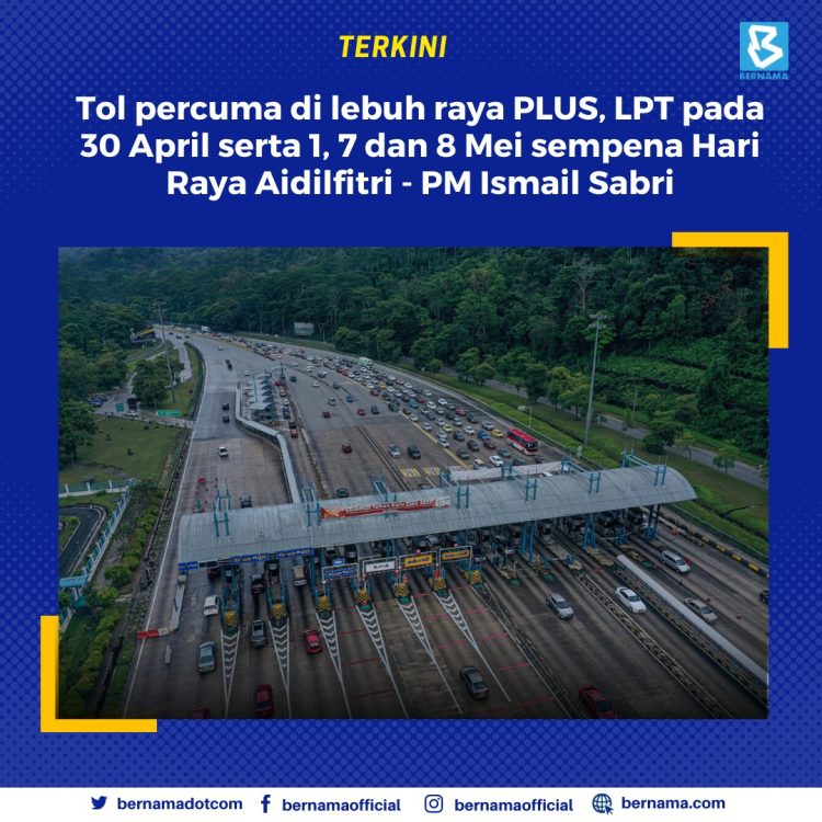 Berita baik buat rakyat Malaysia yang akan pulang beraya di kampung sempena Hari Raya Aidilfitri nanti! Perdana Menteri, Ismail Sabri Yaakob telah mengumumkan sebanyak 30 lebuh raya di seluruh negara akan menawarkan tol percuma dan diskaun tol sempena sambutan Aidilfitri pada 3 Mei 2022.