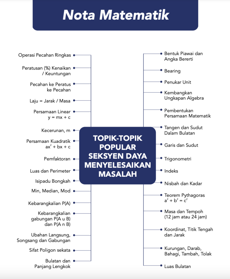 Untuk peperiksaan, admin dah muatkan senarai lengkap topik popular Seksyen Matematik SPA untuk rujukan anda.