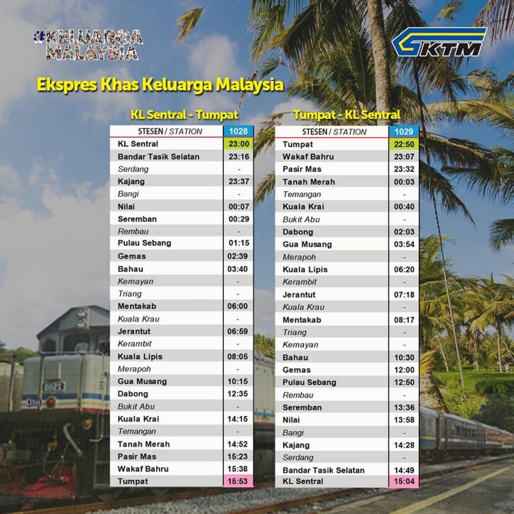 Berikut adalah jadual perjalanan tren ekspres khas keluarga Malaysia: