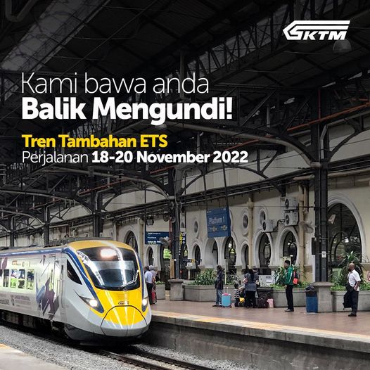 Berita baik buat rakyat Malaysia! Keretapi Tanah Melayu Berhad (KTMB) menawarkan perkhidmatan tren tambahan ETS dan tren khas Keluarga Malaysia sempena Pilihan Raya Umum Ke-15 (PRU-15) yang dijadualkan pada 19 November 2022.