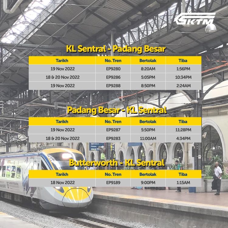 - dari KL Sentral – Tumpat pada 18 November 2022 dan