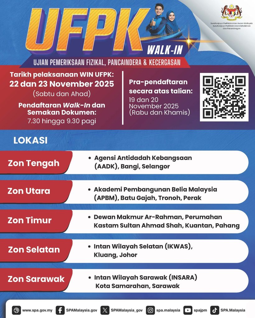 Jika anda bercita-cita membina kerjaya dalam keselamatan awam, operasi kecemasan, penguatkuasaan atau ingin menyertai skim berkaitan K, sesi UFPK Walk-In 2025 adalah peluang yang tidak wajar dilepaskan.